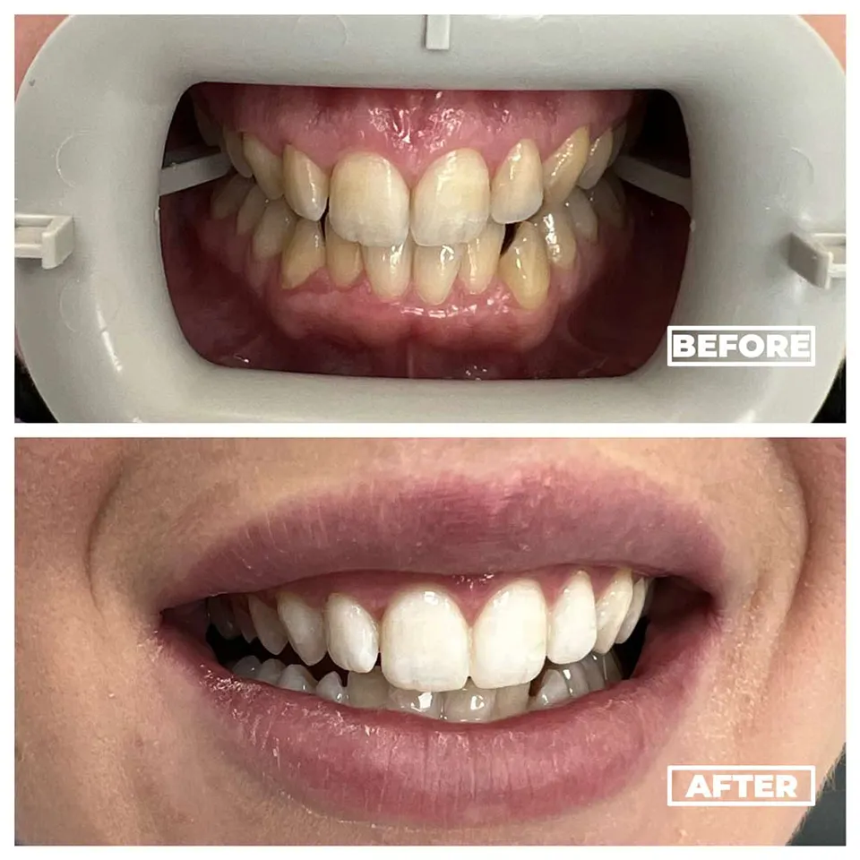 Yellow teeth brightened with professional whitening.